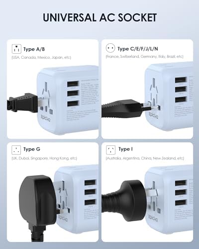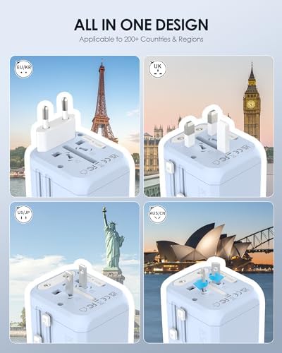 WORLDWIDE ADAPTER & TRAVEL ESSENTIALS – Our all-in-one adapter is equipped with 4 different plug types that could plug into the sockets of 200+ countries and regions: Type C (most popular type) for use in most of Europe, including France, Germany, Italy, Spain, Iceland, Greece, and many other countries; Type G for UK, Ireland, HK, Malaysia, Singapore; Type I for China, Australia, New Zealand, Argentina; Type A for USA, Mexico, Canada, and Japan. It does NOT work with Type D (India) or Type M (South Africa) sockets.