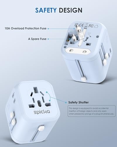 PORTABLE AND SAFE – This compact international power adapter is ideal for travelers, overseas business, work, and students, epecially if you need to fast charging your tablet or laptop. It does not have surge protection and can be conveniently used on a cruise ship as well. Built-in 10A fuse, safety shutters, separate plug lock system, RoHS, CE, FCC certifications, and our 2-year limited warranty provide extra peace of mind.