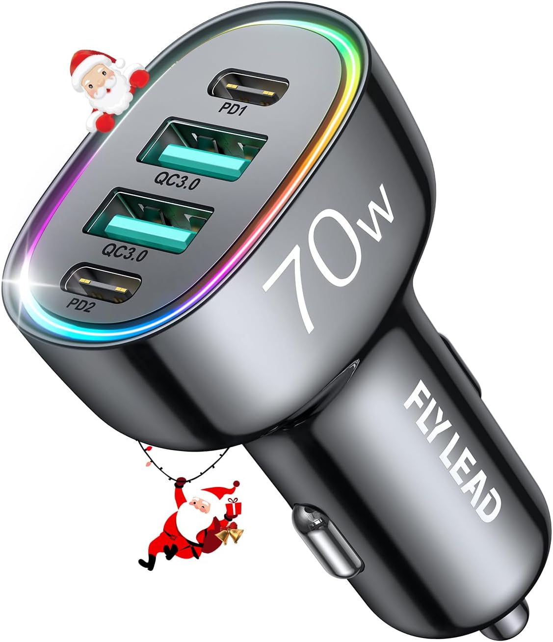 Upgraded 4 Port Car Charger: 70W multi port charger adapter is equipped with 2 USB C ports and 2 USB A ports. Kids on the back of the car will love it while traveling. Because they won’t have to fight for the problem who can use the cellphone car charger first. Best for your trip