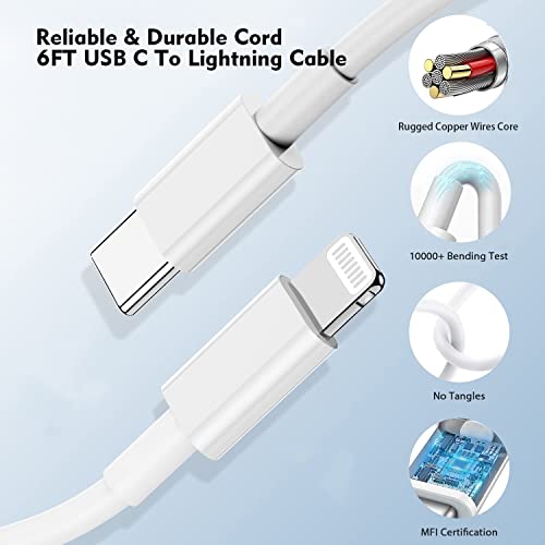 [ MFi Certified Fast & Safe Charging ]: 6feet/2m iPhone 14 Charger USB C to Lightning Cable embedded with smart chip ensures 100% flawless compatibility with iPhone devices, so that you will have a good experience on fast charging and fast 480 Mbps data transfer, syncing.You can enjoy anywhere for using USB C Fast iPhone Charger Block and Cord.