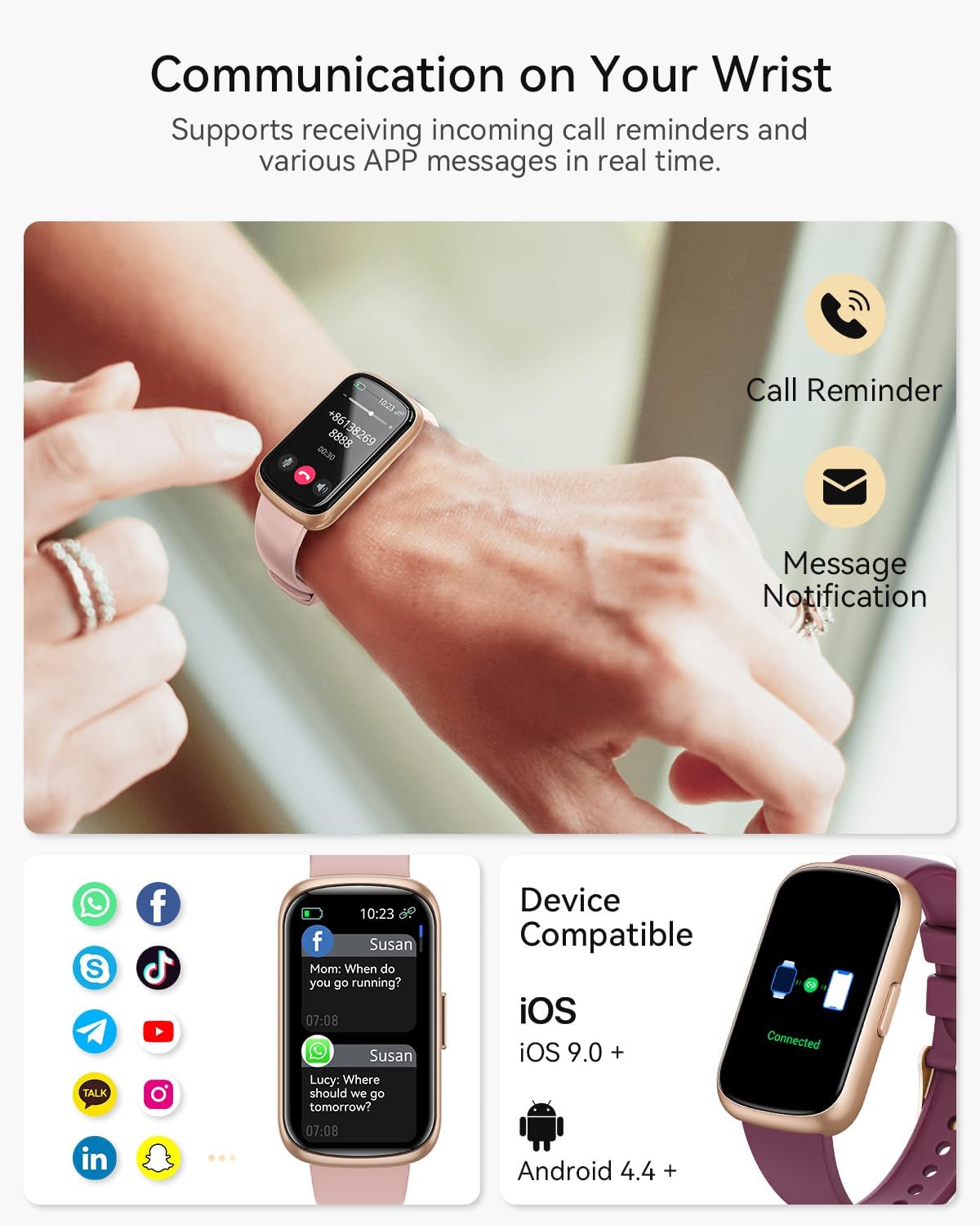 Note: The smart watch support receive calls reminders, but can’t make calls.