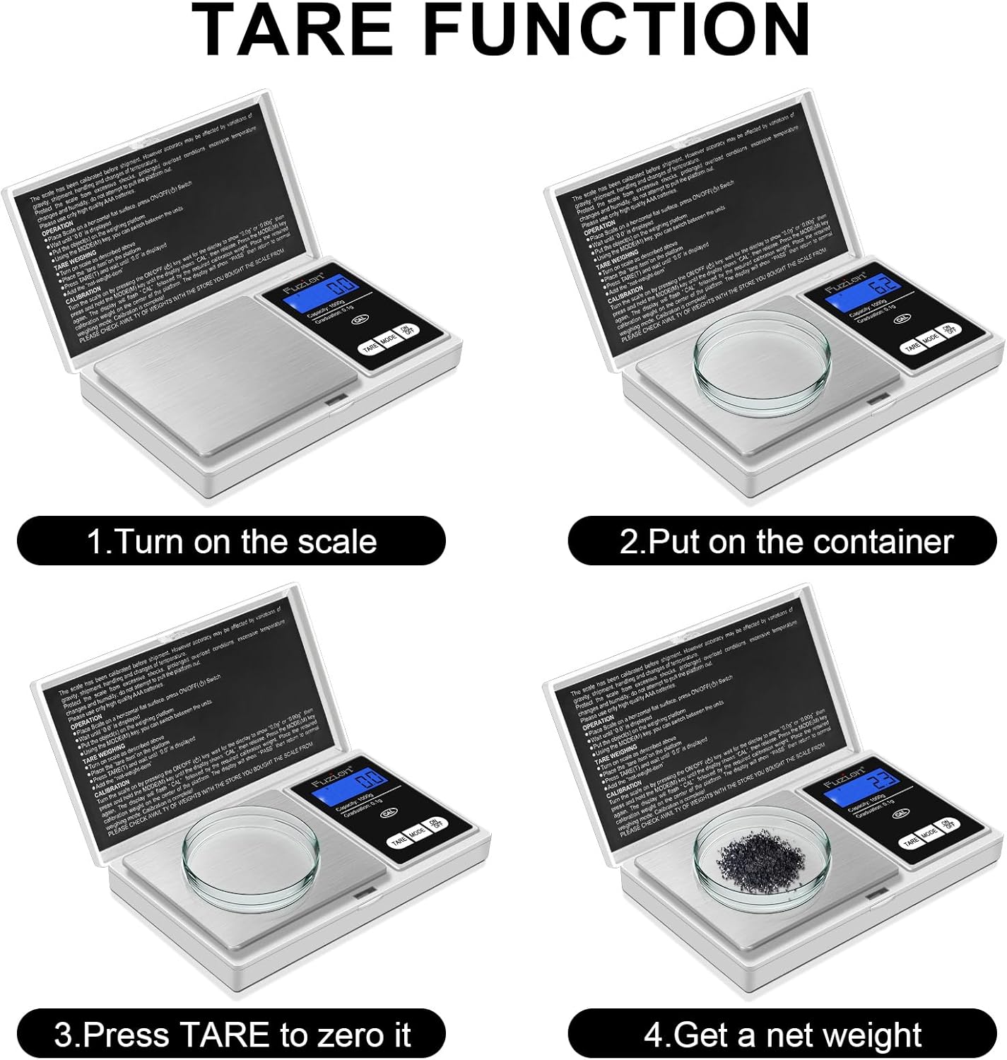 Function: You can use the tare function to get the net weight of anything within 1000g by zero the weight of container. Energy saving by settable auto-off function.