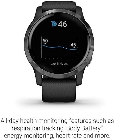 Tune in to your body, and tone up with the 45mm Vivoactive 4 GPS smartwatch. It has the broadest available range of all-day health monitoring features, music storage and on screen, Animated workouts To help you reach your goals. Boost every activity by downloading your favorite Spotify or Deezer playlists (may require a premium subscription with a third party music provider) straight to your watch. Bezel material: Stainless steel.