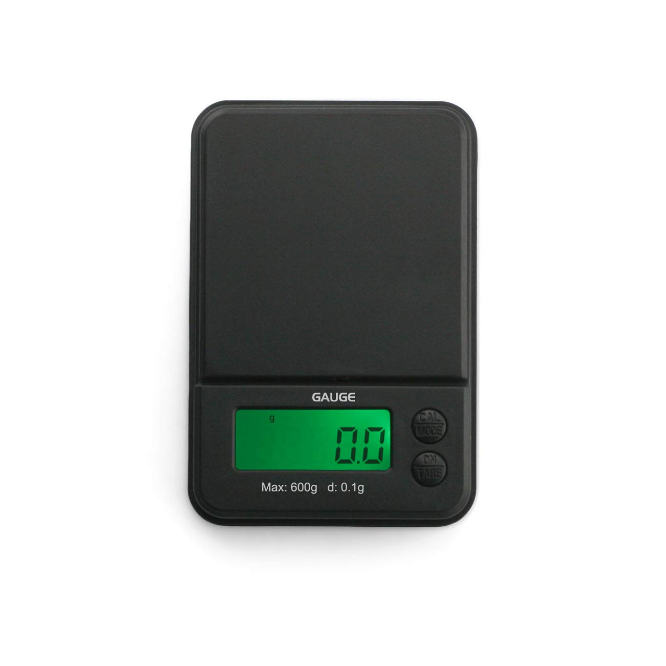 The GAUGE digital mini scale features a compact design that fits nicely in a pocket or travel bag. The black plastic cover can be removed to use as a weighing tray for added versatility. Results are easy to read on the green back-lit LCD in any lighting condition. Our portable food scale convert automatically between: G / OZ / OZT / DWT / CT/ GN.