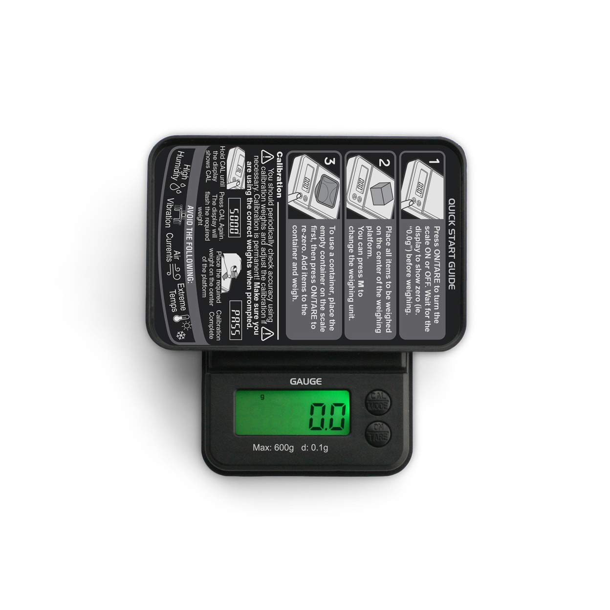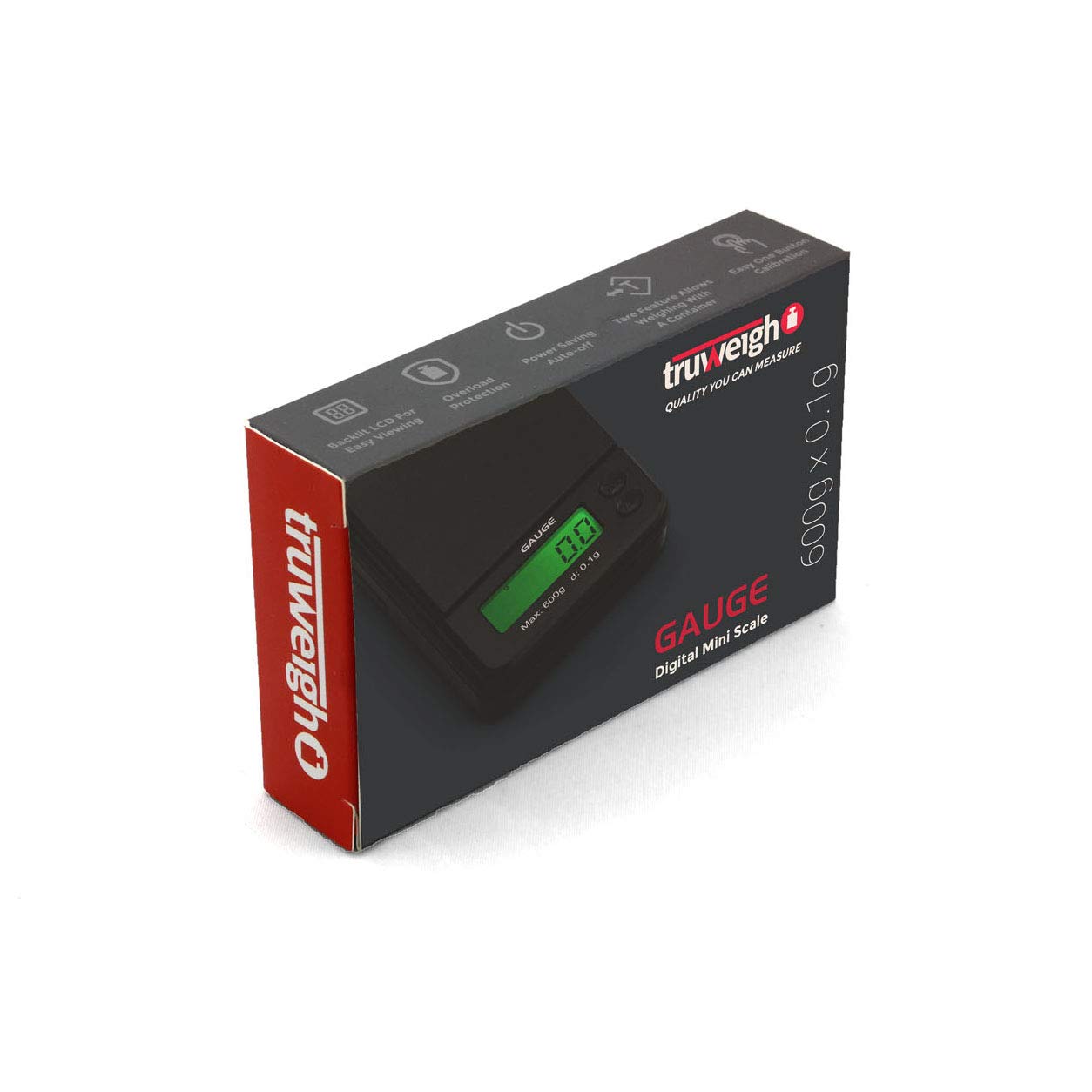 The Truweigh GAUGE discreet pocket scale has a max capacity of 600g and a readability of 0.1g making this a great beginner scale for basics needs. It also comes with our in-depth instruction manual to make sure you utilize all features that come with our Truweigh GAUGE herb scale. Our digital food scale has a clean stainless steal platform that can fit a bowl or powder pan. Truweigh also included two AAA batteries, making our jewelry scale ready to use as soon as you receive it.