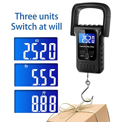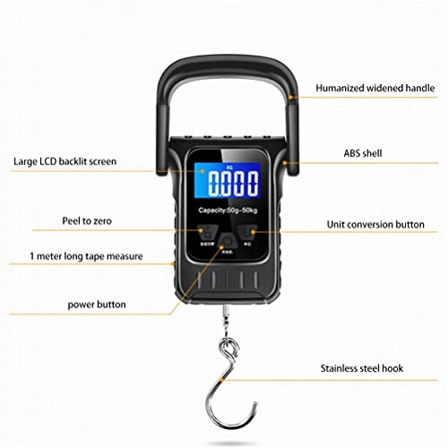 Comfortable handle and ruler tape: This fishing scale has a ruler tape. Pull the ruler tape from the left side of the scale to measure the item. There are two sizes: centimeters or inches. The -wide, comfortable plastic handle provides a good grip even when measuring heavy objects such as 50 kg.