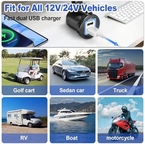 【Wide Usage Range】: Our 12V USB power outlet also work well with standard USB phones and tablets, GPS, camera, android tablets, wireless earbuds, iPad, power banks, video games controllers, Edge, Asus, LG, Nexus, HTC and other devices.
