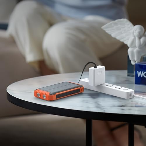 Solar Power Bank:[Power 6 Devices at Once] This solar charger is also equipped with 4 ports (iOS input, USB A output, USB C input/output), providing 5V/3A high-speed charging to save time. Along with 4 charging cables and wireless charging, it supports charging 6 devices simultaneously. Keep all your devices alive. Sharing with families and friends is perfect.