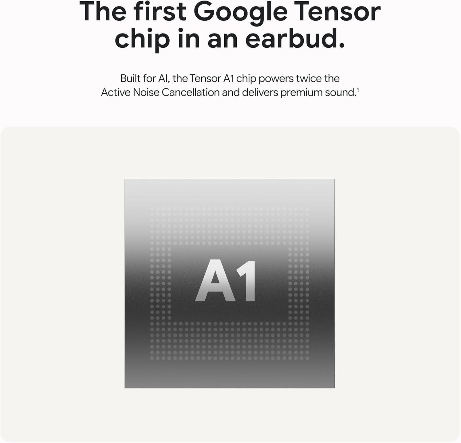 The first Google Tensor chip in an earbud, the Tensor A1 chip powers twice the Active Noise Cancellation and delivers premium sound[1]