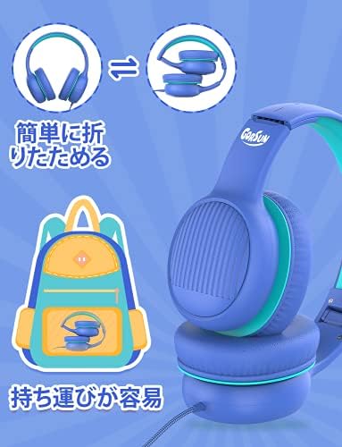 gorsun Premium A66 Kids Headphones with 85dB/94dB Volume Limited, in-line HD Mic, Audio Sharing, Foldable Toddler Headphones, Adjustable, Children Headphones Over-Ear for School Travel, Blue