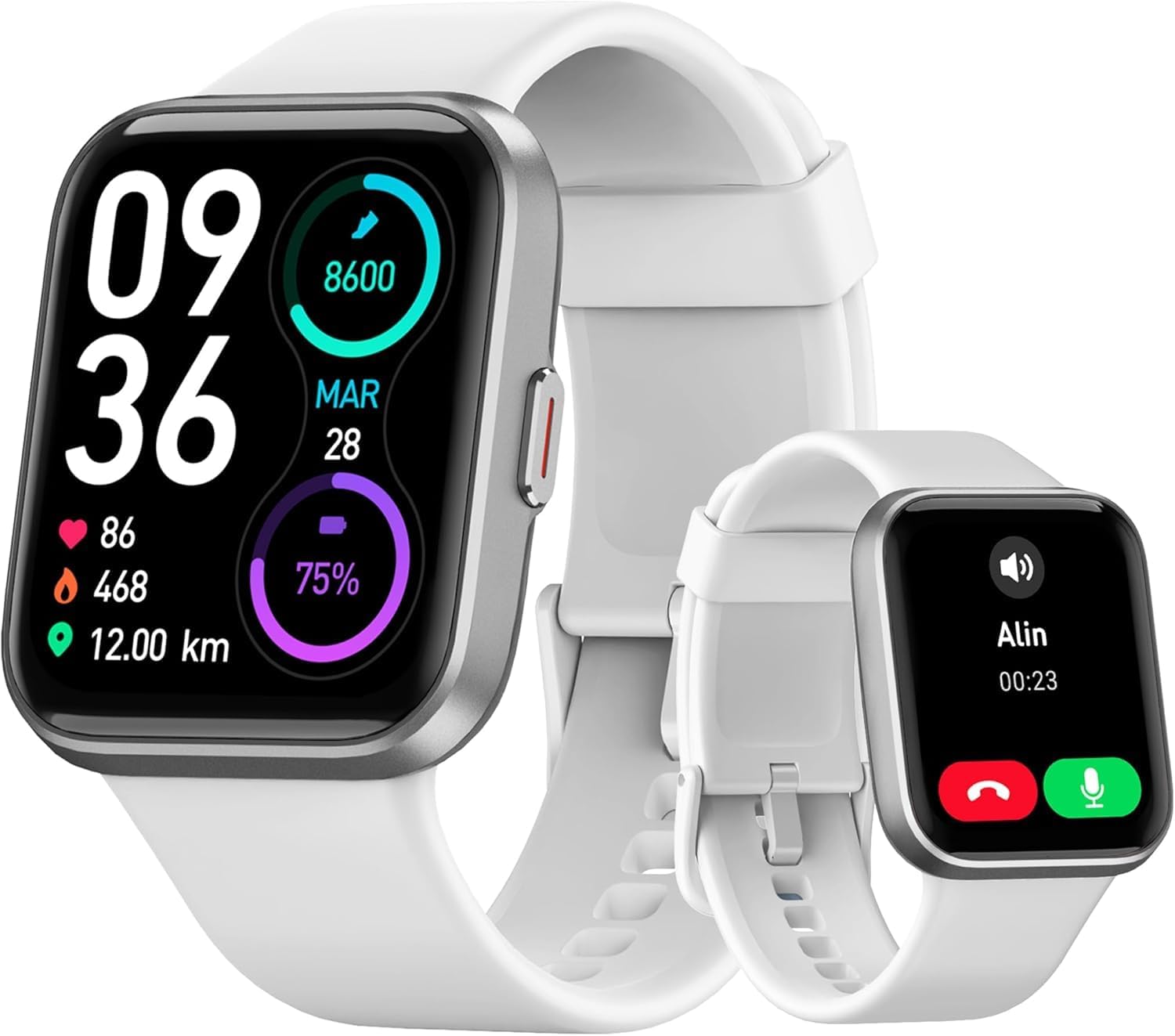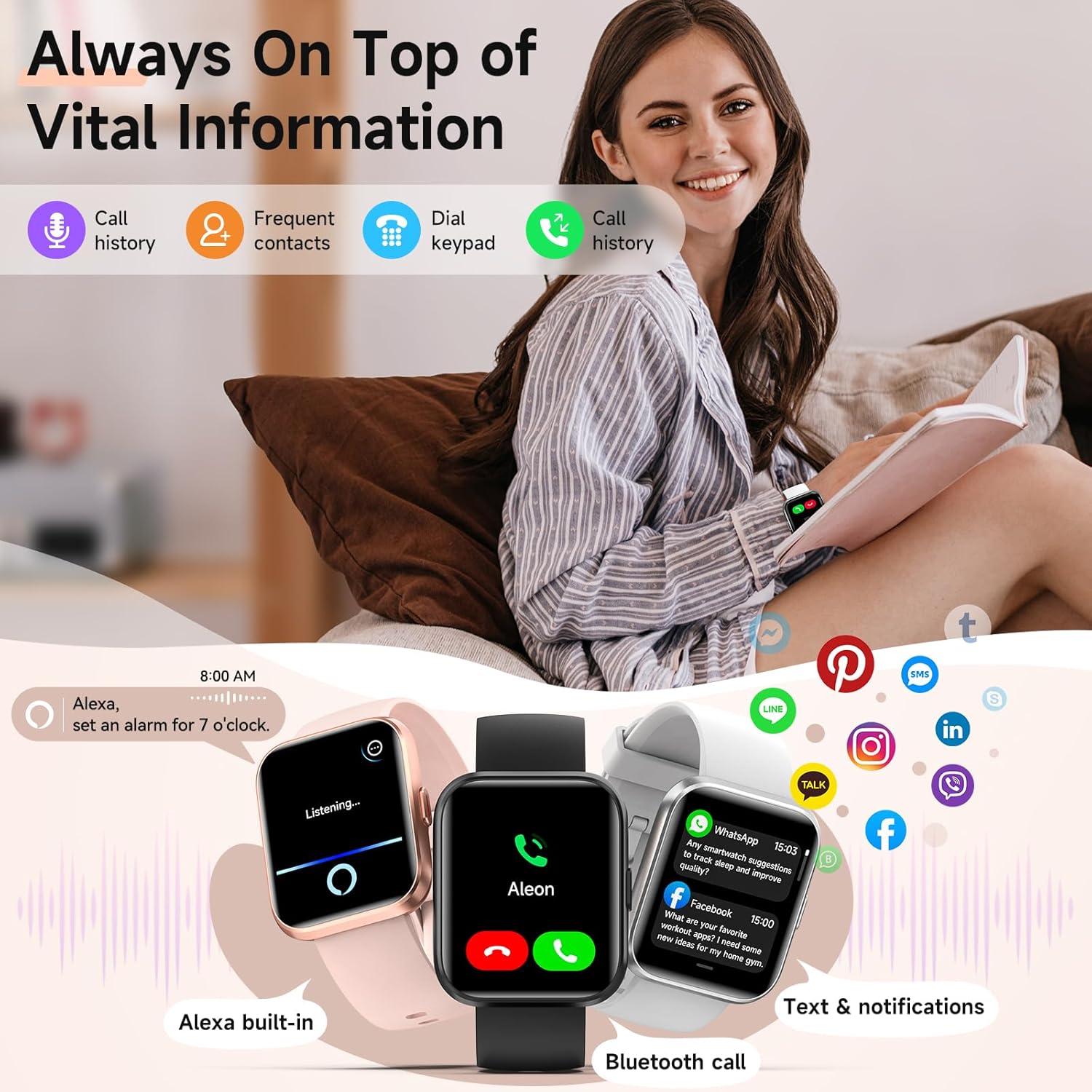 【Bluetooth Calls & Alexa Built-in】With Bluetooth 5.3, this smart watch allows you to Make/Answer/Reject Calls on the go. Also, receive notifications from your smartphone on your wrist such as Facebook, Instagram and more. Work with Amazon Alexa, Command your device to set an alarm, control music or get the latest weather forecast with just a simple voice command by speaking to your watch. (Note: THE WATCH CAN NOT SEND MESSAGES, or TEXT BACK).