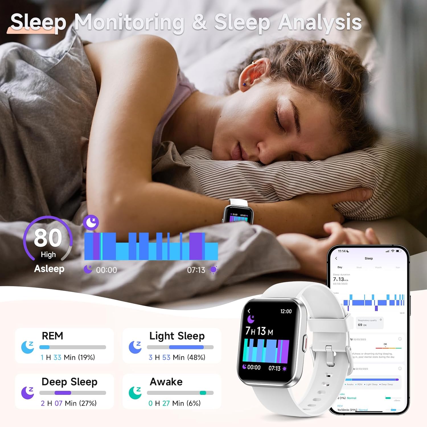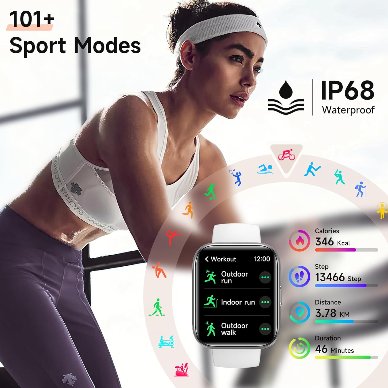 【110 Sports Modes & IP68 Waterproof】The 2024 latest sports watch supports over 110+ sports modes. Accurately monitor exercise time and calories burned whether you’re walking, running, yoga, playing rugby, or even swimming. Equipped with IP68 waterproofing, it promises hassle-free use during handwashing and sweaty exercises.