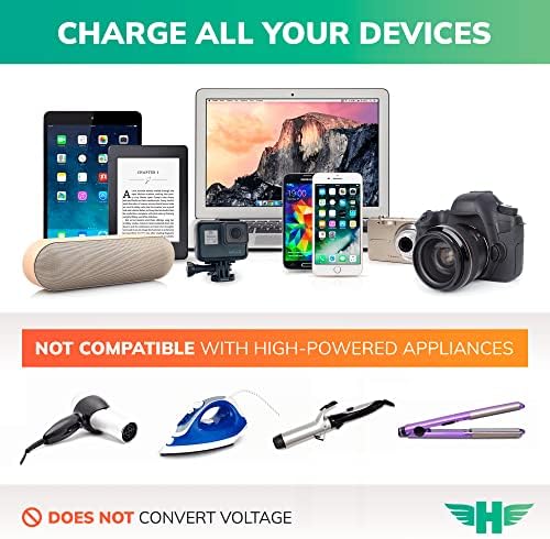 NOT COMPATIBLE WITH BLOW DRYERS, hair straighteners, curling irons, travel kettles, or any high powered appliance. The adapter does not convert voltage. Rated at: 100V to 250V. Max load: 3A. DOES NOT WORK IN THESE COUNTRIES – Brazil, India, South Africa (see the full list in the above images).