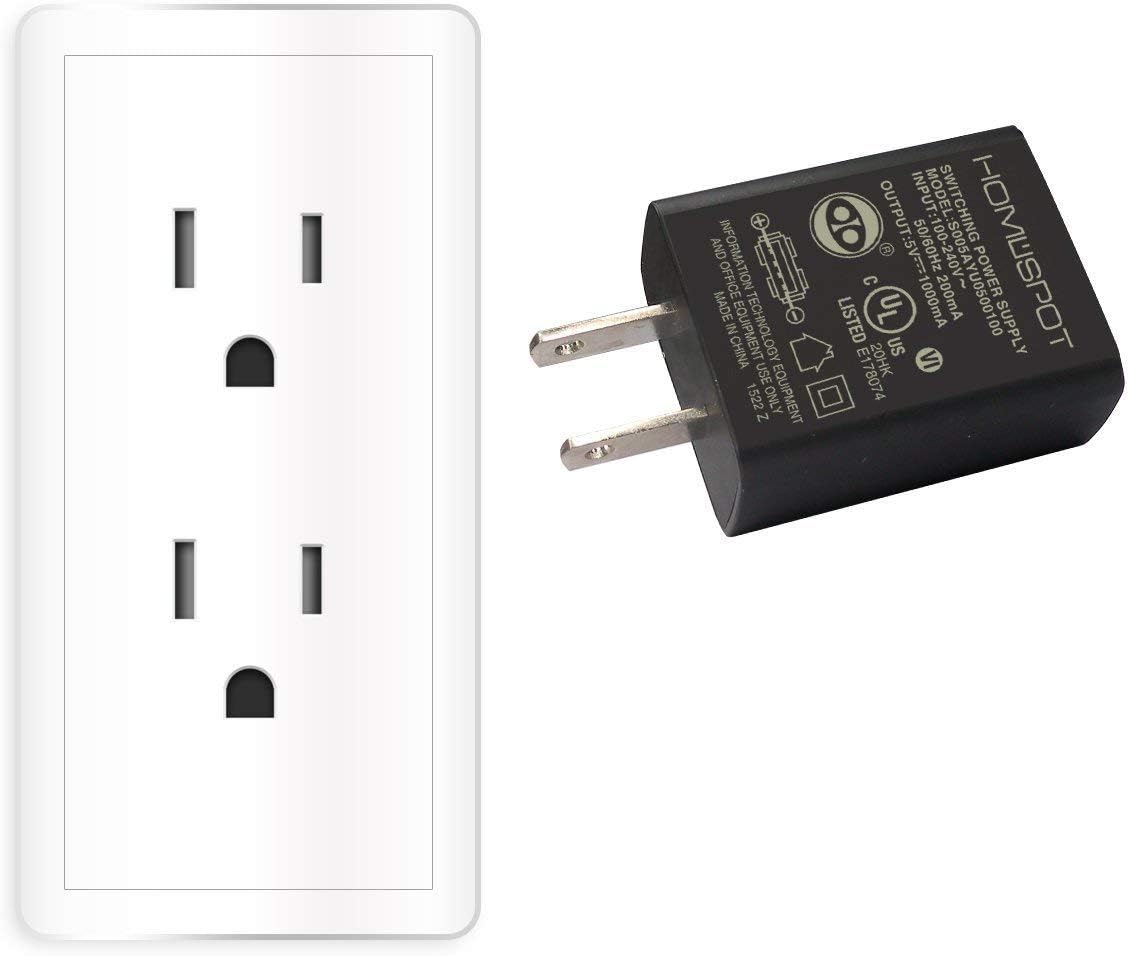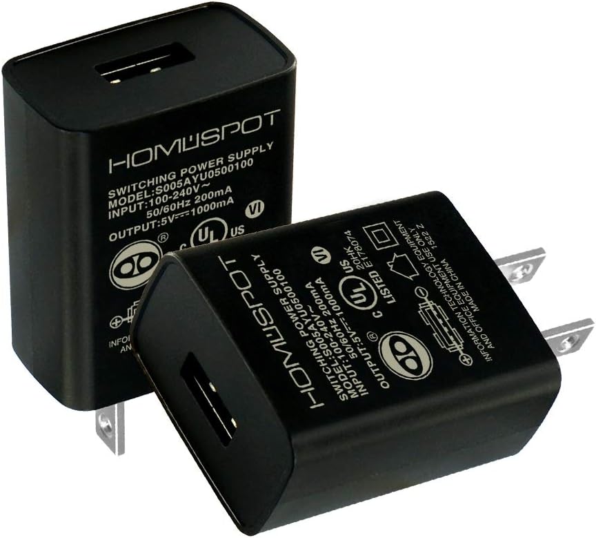 HomeSpot UL Listed Universal US 5V1A USB Wall Charger Plug in-Door Power AC Adapter for Travel Office Home Use – 2 Pack