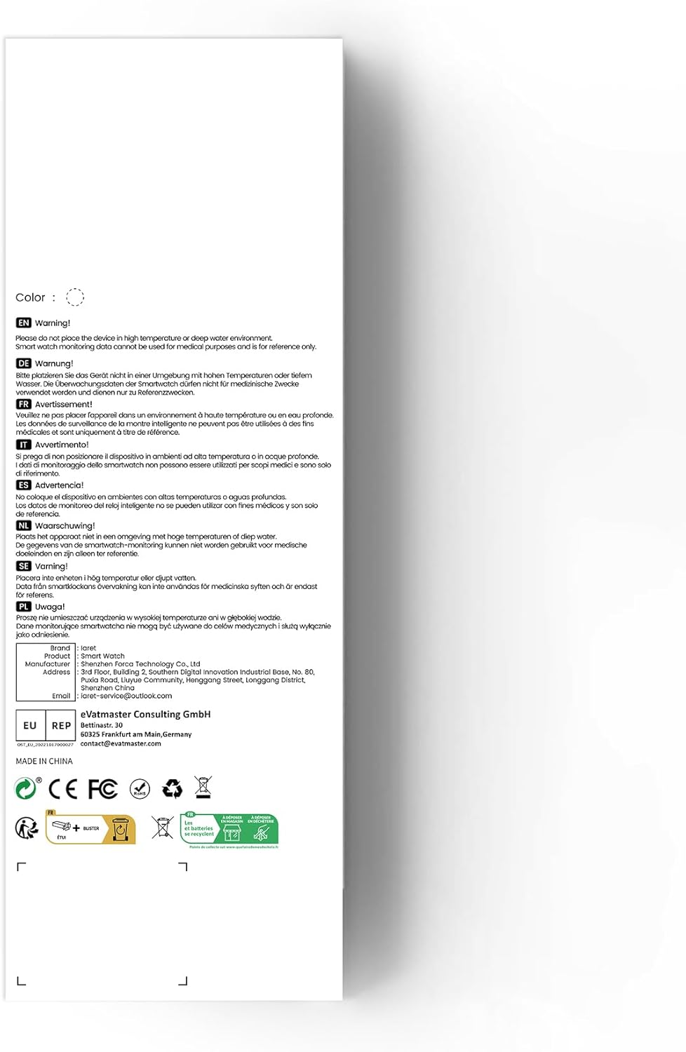 LONG BATTERY WATERPROOF WATCH: IP67 waterproof watch has a good waterproof effect for daily life, such as hand washing, sweat-proof, rain-proof. Not recommended for hot springs and shower use. Equipped with a 270 mAh battery, only takes 2 hours to get fully charged and can be used for up to 3-10 days (Note: depends on individual usage), long standby time of 30-40 days. You will get 1 smartwatch body, 3 smartwatch bands, 1 charger, 1 user manual.