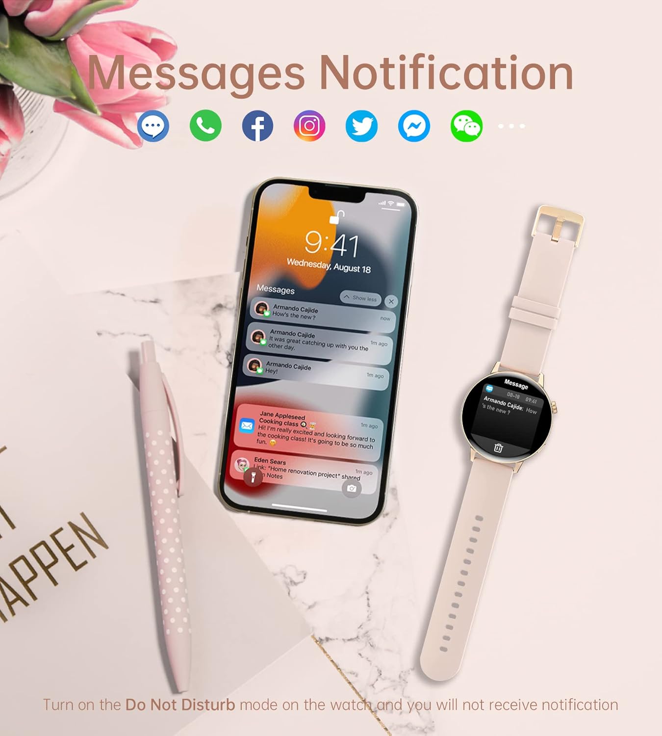 SMART WATCH WITH TEXT AND CALL: Iaret smart watch for Android iOS phones supports Bluetooth dialing and answering calls ( iOS 7.1 and above, Android 4.4 and above, Bluetooth distance 8-10 meter). When connected to Bluetooth, you can dial and answer/reject calls directly from the smart watch. You can also receive alerts from SMS and SNS such as Facebook, Twitter, WhatsApp, Skype, Instagram, etc. (No reply message function). All notifications will show on your wrist and remind you by vibration.