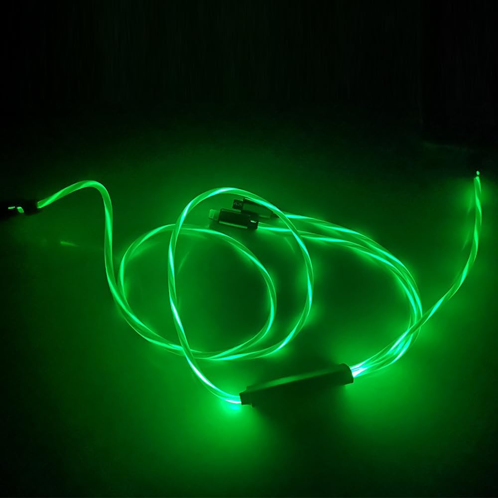 1. Cool Visible Colorful Green Current Flowing: Charging cable shows beautiful Green LED light flowing, bring the most comfortable visual experience to you. Green Streaming light stays on will shine your room or car, this cable can be used as a night light.