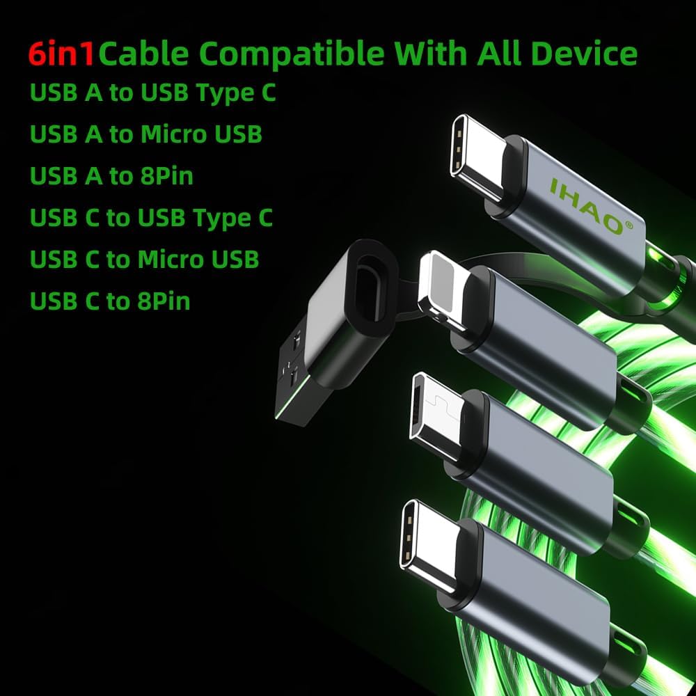 6 in 1 Multi Connectors USB A/Type C to USB Type C/Micro USB/8pin PD