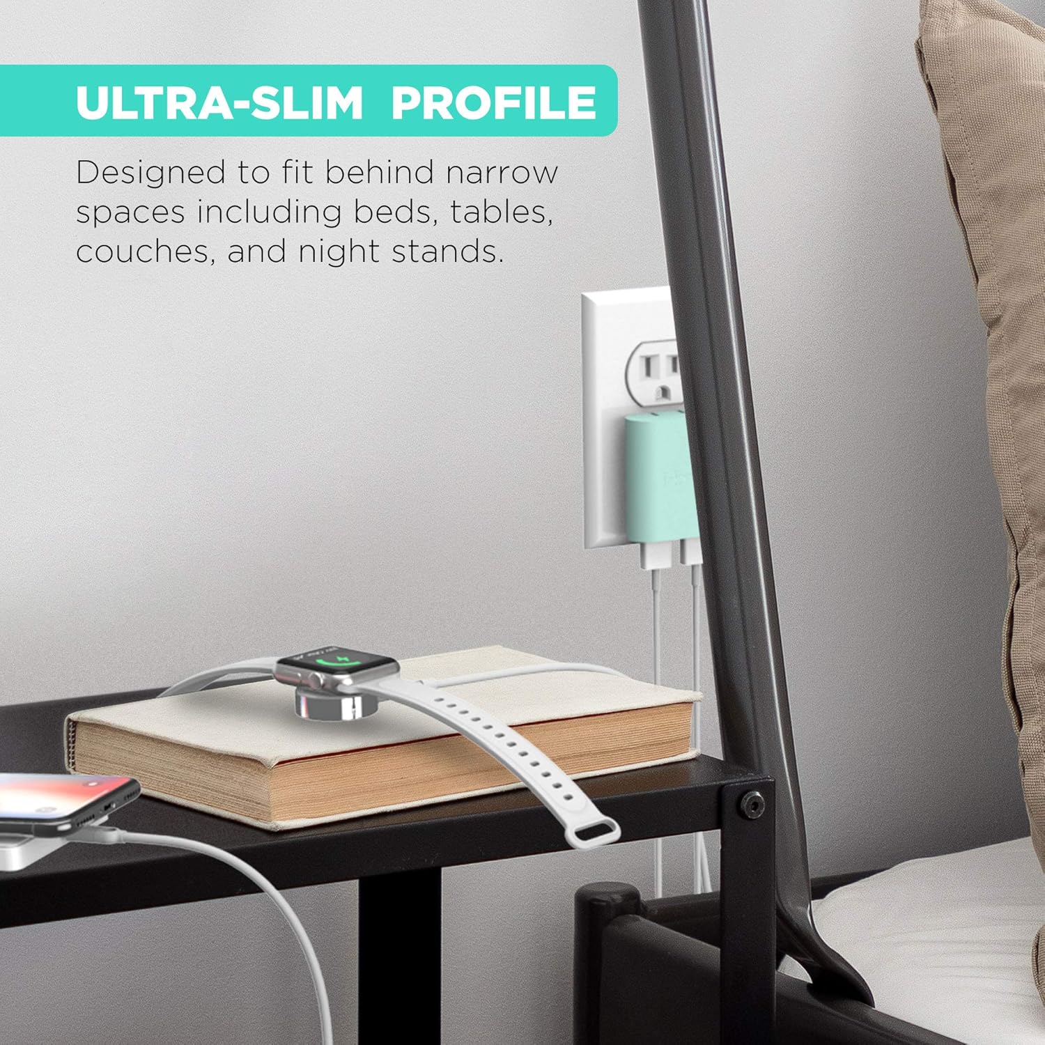 The AC Pro USB wall charger has a slim design that allows you to easily reach hard-to-reach wall outlets behind sofas, beds, and nightstands.