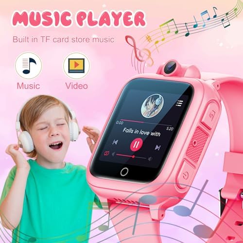 Interactive Kids Smartwatch with 14 Puzzle Games for Girls Ages 4-12, HD Touch Screen, Music Player, Camera, TF Card Slot, 12/24 hr – Pink
