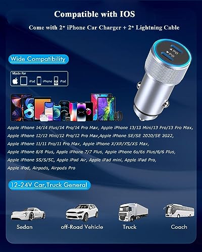 ![iPhone Car Charger,【2Pack】Dual Port USB C Fast Charger Car Power Adapter [Apple MFi Certfied] Apple Charging Cigarette Lighter with 2Pack Lightning Cable for iPhone 14 13 12 Pro 11 X SE 8 iPad- Silver - Image 5](https://travelzoneuk.com/wp-content/uploads/2024/06/51zGGWjM9GL.jpg)
