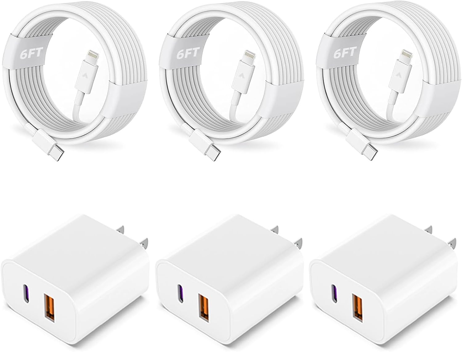 【iPhone 14 Pro Max Charger】3 Pack 20W USB and USB C Dual Port iphone Fast Charger Plug + 3 Pack 6FT USB C to lightning fast charging cable. 365 day’s Worry-free refund and replacement guarantee. Any questions, don’t hesitate to contact us!