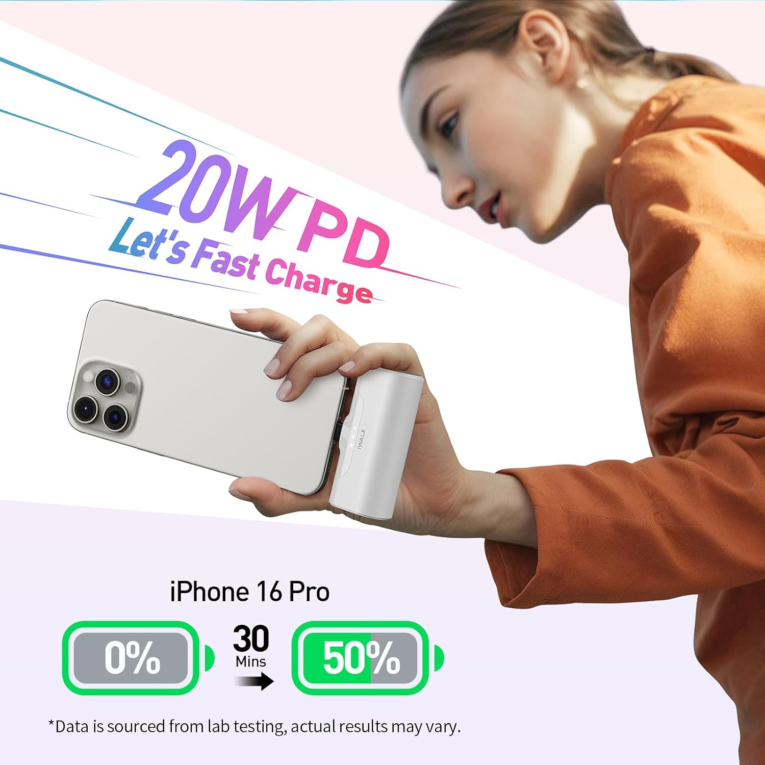 USB-C More Compatible – iWALK Portable charger power bank with bulit -in USB-C port is compatible with iphone 15, iphone 15 pro, 15 Plus,15 Pro,15 Pro Max, iPhone 16 /16 Plus/16 Pro/16 Pro Max, iPad, AirPods, and also designed for Anroid phones, like Sumsang Galaxy S22 ultra series, Pixel, Oneplus ,Huawei. Mini power bank no need a cord, say goodbye to the mess
