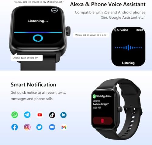 ⌚【ALEXA BUILT-IN MULTIFUNCTIONAL SMART WATCH】With this Alexa built-in fitness smart watch, answer/make calls, receive message alerts, control music, set alarms, and even find your phone with just a few taps on the touch screen. It also has functions like menstrual cycle tracker, sedentary and drink water reminder, music control, remote control to take photos on your phone, check the weather, timer, stopwatch, flashlight, calendar, calculator, games and so on. Besides, it can be used to activate voice assistant like Siri, Google Assistant etc. Download the “VeryFit” app from the App Store/Google play, connect to your watch via Bluetooth, and enjoy the convenience of Alexa on your smartwatch.