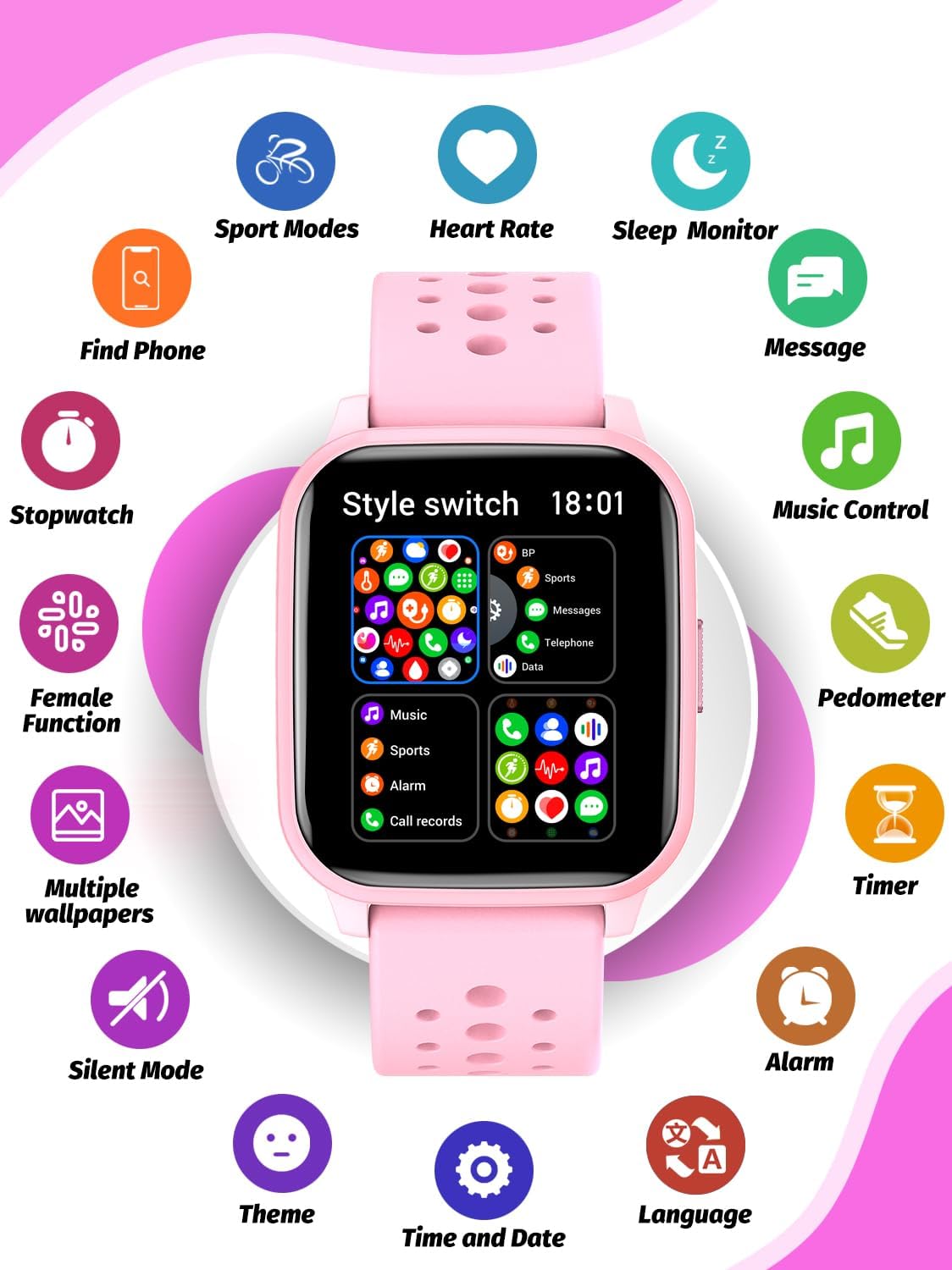 Gifts for Girls’ Wrist Watches:Waterproof smart watch for kids with stylish and cute design. The High definition touch screen has adjustable brightness.The kids girls watch use a more comfortable and durable TPU strap to enhance the durability of the strap to accommodate children’s active lifestyle. It has many interesting and useful features, it will be a great gift for birthday、new year、holidays,etc