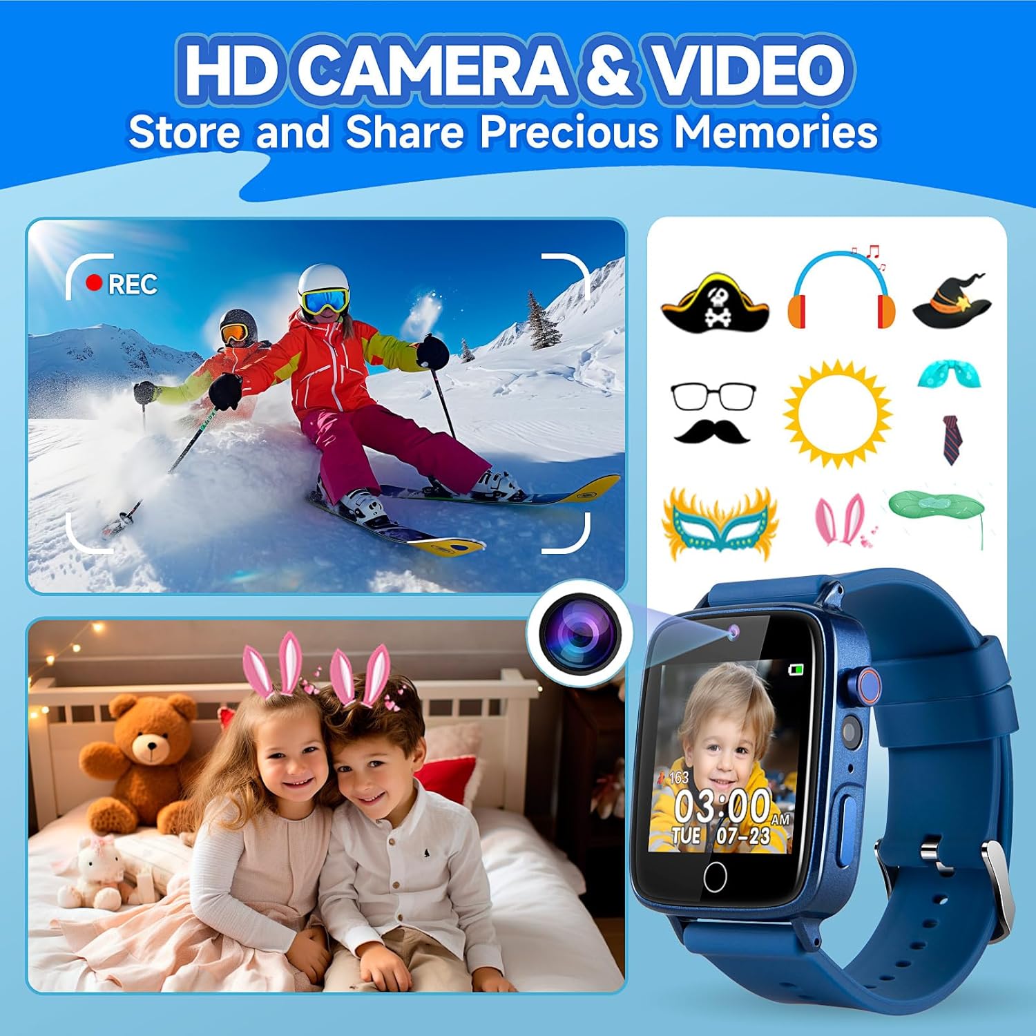 CAPTURE AND EXPLORE WITH CAMERA: Equipped with a 300,000-pixel camera, kid watches enable clear and vibrant photos and videos, enhancing the quality of captured memories, and inspiring a budding interest in photography and creativity