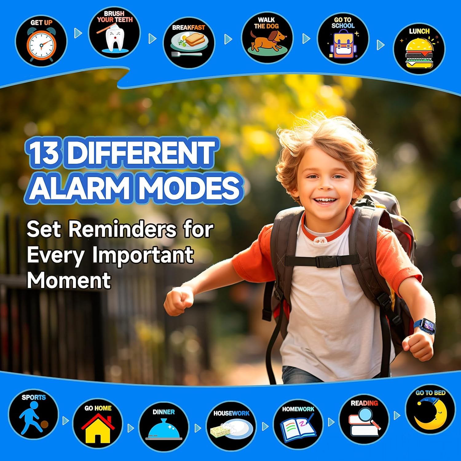 LONG BATTERY LIFE: Enjoy up to 10 days of standby time and features a rechargeable battery. Boys watch fast charging, so kids can enjoy the watch without interruption. Alarm function keeps kids on schedule, making it a practical tool for managing their daily routine
