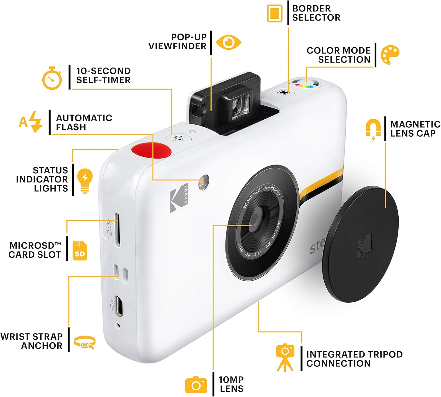 EASY, FAST PHOTO SHARING | No More Connecting Cables & Transferring Files to a Computer | All-in-One Device Features 10MP Camera with Photobooth Mode, Timer Setting, Auto Sleep, Pop-Up Viewfinder & Flash | Press the Red Button to Snap, Save & Print Photos in Under 60 Seconds