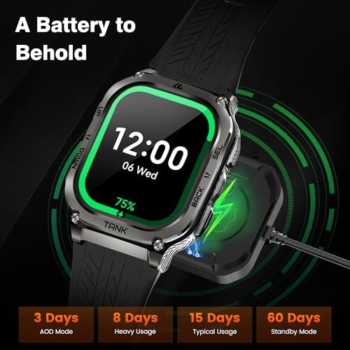 Long-Lasting Battery Life: This smart watch has been upgraded with a 480mah pure cobalt battery, which can be fully charged for an hour and can stand for over 2 weeks under normal use. The super dual-membrane Bluetooth chip processor and extra-saving AI algorithm minimize power consumption and ensure a 60-day long standby.