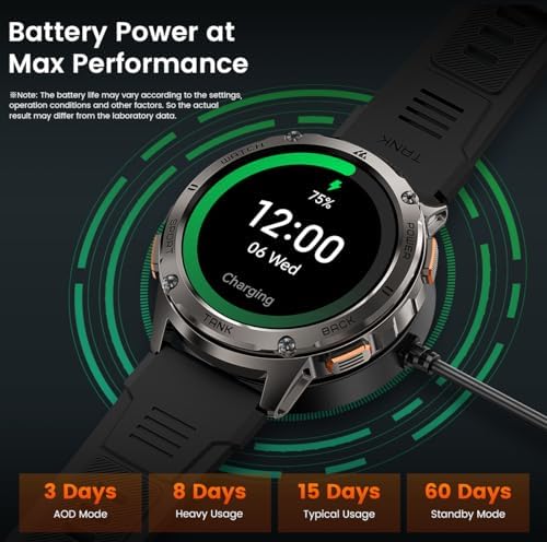 ➤【60+ Days Long Battery Life】T3 smart watches for men has up to 480mAh 100% pure cobalt battery (military grade), which is twice the performance and lifespan of traditional smartwatches. In addition,the latest ultra power-saving AI algorithm is super power-saving, enough for up to 2 weeks of normal use and can continue to use sports mode, health index measurement and other functions for up to 60+ days.
