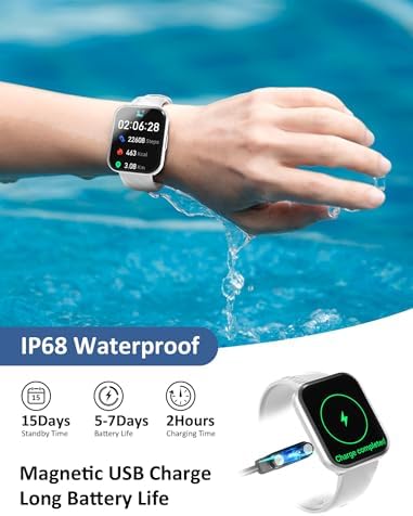 [100+ Sports Modes and IP68 Waterproof] The Kumi Smartwatch supports 100+ sports modes, including swimming, running, rock climbing, and yoga, providing data for all your favorite sports. The sport smartwatch is IP68 waterproof, making it ideal for outdoor activities, rainy days, and hand washing.