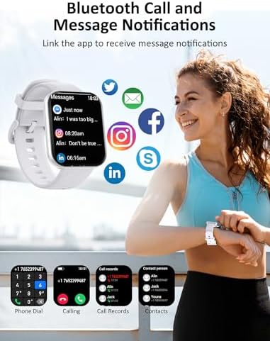 [Easy Make/Answer Call/Notification] Smart watch connect to your phone via Bluetooth, allowing you to make and answer calls, as well as enjoy music directly from your smartwatch. Download the free ‘KUMI’ app to receive alerts for calendar events, SMS, incoming calls, and various social media notifications. Never miss important events again with this watch that keeps you in the loop. (Note: Our Operation video will guide you on how to use the smartwatch effectively)
