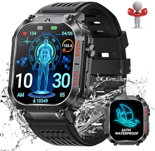 【5ATM Waterproof & Military Quality Standard】- LaNikar military smart watch for men adopts a military-grade metal case, a large glass screen with 9H excellent hardness, and a fully enclosed 5ATM waterproof design to ensure reliability and durability in extreme environments. You can wear it for daily water sports like swimming, diving, surfing and more! At the same time, LaNikar outdoor waterproof smart watch also has a compass function, making it the best companion for outdoor enthusiasts!
