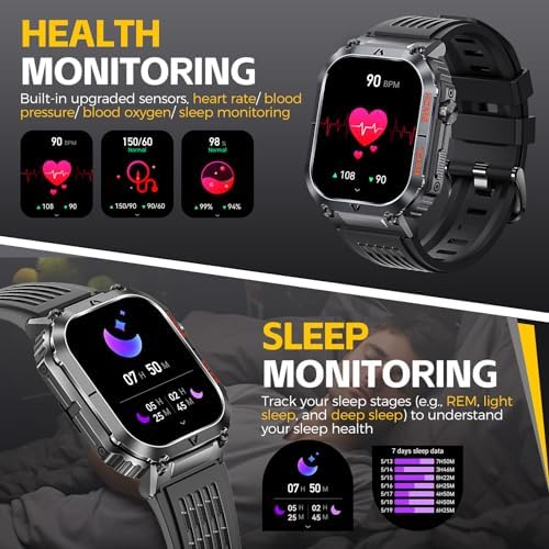 【Bluetooth Calls & Notifications】- LaNikar smart watch with text and call is equipped with a 5.2 Bluetooth chip and high-quality speakers, compatible with Android 6.0 and ios 10.0 and above phones, whether you’re in a meeting or on the move, you can answer/reject calls with one tap on your rugged smartwatch and communicate more freely. At the same time, you can keep up to date with messages and notifications(Facebook, WhatsApp, Twitter, etc), and the information you need will be available first!