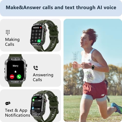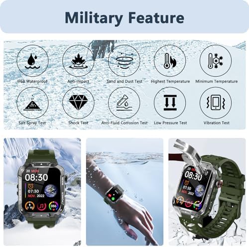 ⌚Military Using: This smartwatch is a multifunctional smart watch that is also a military smart watch. This smartwatch can be used not only for daily use, but also for outdoor extreme sports.It has IP68 waterproof, dustproof, anti-impact etc., which will help you do a better job for outdoor sport. Made of special aluminium alloy material, this smartwatch can withstand harsh environmental conditions, making it the perfect companion for outdoor adventures.