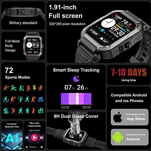 Military Smart Watches for Men: Rugged smart watch has been verified by military standards. The polymer composite material and metal shell allow tactical watches for men to pass a number of rigorous tests, including low temperature, high temperature, seawater, salt spray, high pressure altitude, etc., so that Smart Watches for men can be used in different outdoor environments
