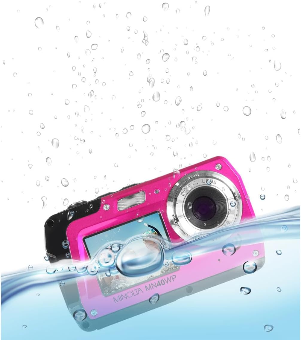 The Minolta MN40WP Digital Camera shoots 48MP pictures and 2.7K Ultra HD video. Featuring a compact size, 16x digital zoom lens, 3.0″ Rear TFT LCD screen and 2.0″ Front TFT LCD screen. The front screen can be used as self-timer screen with face recognition technology, so you can easily take the perfect selfie. Special features including Panorama Shooting, Face Detection and Smile Capture make shooting the perfect shot easy. A built-in flash provides the perfect lighting, while anti-shake image stabilization delivers a steady and smooth picture. Waterproof, up to 10 feet, lets you capture amazing underwater photos.