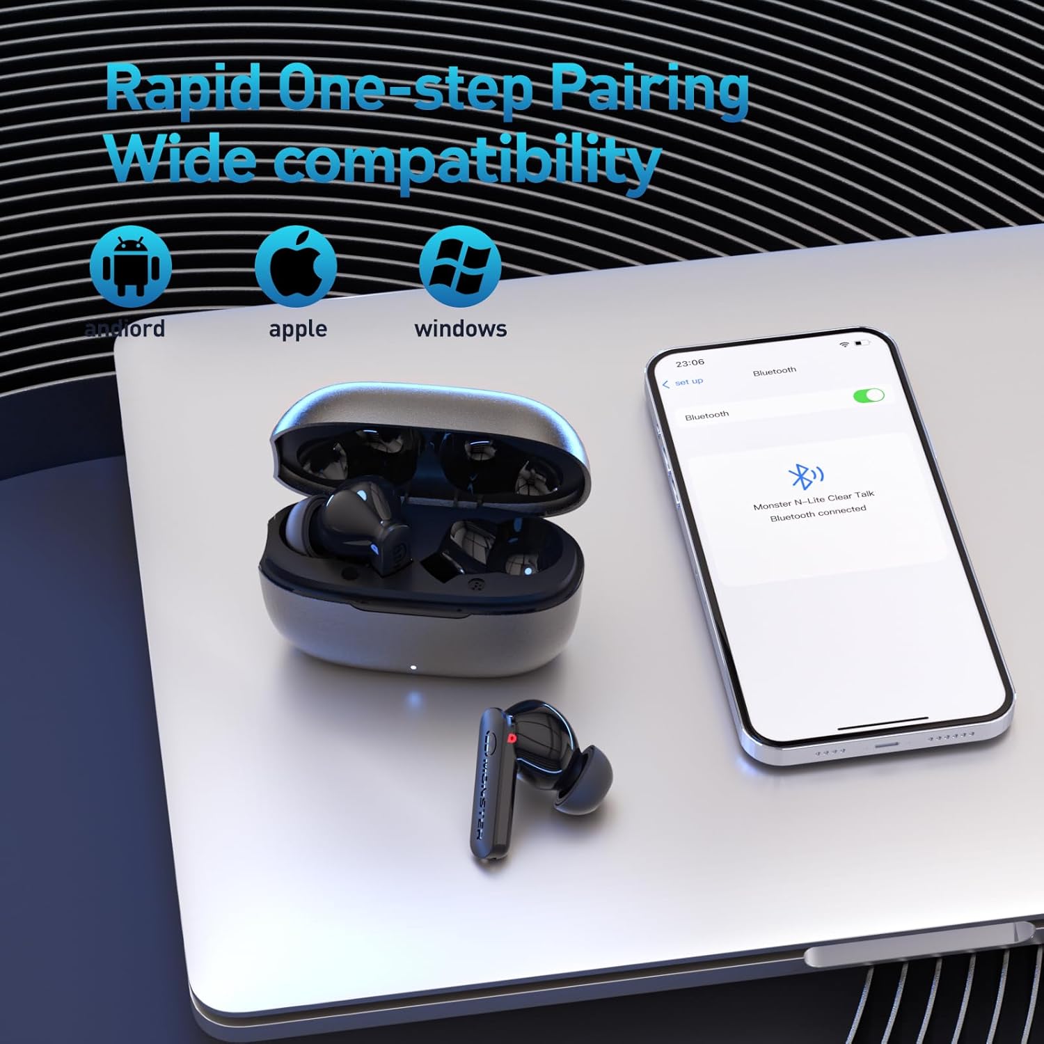 Noise Reduction Earbuds for Call- Adopted CVC 8.0 noise-canceling technology, the Bluetooth Earbuds built-in 4 mics and an exclusive ENC algorithm to tune out background noises and ensure sound clarity. Immersing yourself in a clear sound feast no matter in calls, video chats, or any noisy environment.