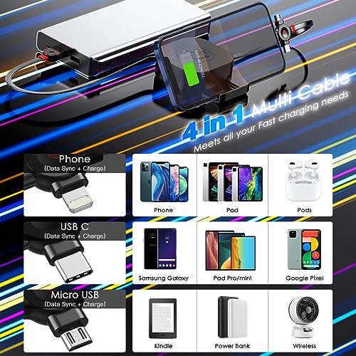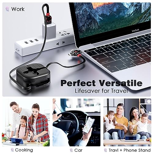 ⚡【Retractable & Phone Stand】:The Retractable multiple charger cord has a built-in phone stand design, a retractable stand was set up in the back of the charger box,which could be used as phone stand to let you free hands and enjoy watching while you are charging.