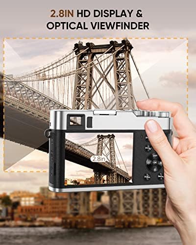 𝐕𝐢𝐞𝐰𝐟𝐢𝐧𝐝𝐞𝐫 & 𝐅𝐥𝐚𝐬𝐡 𝐟𝐨𝐫 𝐏𝐞𝐫𝐟𝐞𝐜𝐭 𝐏𝐡𝐨𝐭𝐨𝐬: The digital camera with a viewfinder allows you to capture the beauty in real-time, reducing the impact of harsh outdoor light on your photography. It aids beginners in achieving professional compositions and taking excellent photos. The small digital camera is equipped with a flash for clearer shots in low-light conditions. The included hot shoe allows you to connect external flash units and microphones.