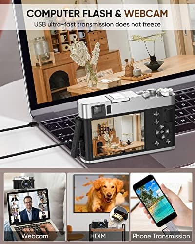 𝐓𝐫𝐚𝐧𝐬𝐦𝐢𝐬𝐬𝐢𝐨𝐧 & 𝐒𝐞𝐫𝐯𝐢𝐜𝐞: Retro digital camera can be connected to a 1/4 screw tripod, and you can use an HDMI cable to display images on a TV or a Type-C cable to transfer photos to a computer quickly. We provide a hassle-free 1-year warranty, 32GB micro SD card, 2 rechargeable batteries… If you encounter any issues while using the digital camera, please don’t hesitate to contact us, and we will respond within 24 hours.