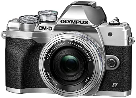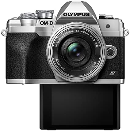 Olympus OM-D E-M10 Mark IV Mirrorless Camera, Silver, with 14-42mm EZ Silver lens, 5-axis Image Stabilization, 20 MP Sensor, 3-inch Tilting Touchscreen, Easy Shooting Modes, Wi-Fi/Bluetooth, and 4K Video.