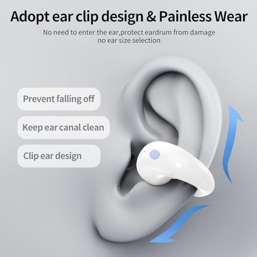 Open Ear Clip Ergonomic Earbuds: The subversive design of ergonomics adopts a completely open design, allowing you to listen to the sound of the external environment at the same time, and to respond politely to others. It is very comfortable to wear that is gently clamped to your ear like a clip and the earpiece of the earbud is placed on your cochlea. The open bluetooth earphones has a unique shape, without being plugged into the ear canal, no longer pain your ear because of long time wearing.