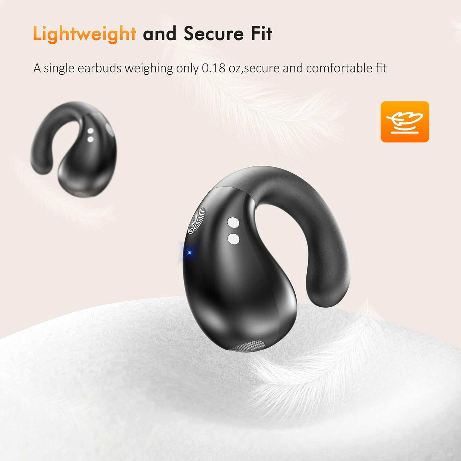 Lightweight and Secure Fit for All-Day Comfort: Weighing just 0.18 oz, these open-ear headphones are crafted from soft silicone for a comfortable, clip-on fit. The earpiece rests gently on your cochlea, while the multi-point support system evenly distributes weight, ensuring they stay securely in place. Ideal for running, fitness, meetings, or outdoor activities, their ergonomic design provides stable, all-day comfort without slipping or discomfort.