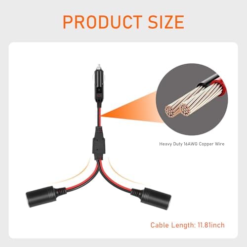 Structural Design: This product adopts Y-shaped structural design. The car cigarette lighter extension cord plugs a male cigarette lighter plug into a dual female DC port socket. It allows you to connect two low-power devices at the same time, making it more convenient to use.