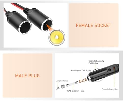 Function: This cigarette lighter extension cord adopts PVC insulating sheath to ensure safe use. The male plug has a built-in replaceable F15A fuse to cut off the current in time to prevent the car shunt and your equipment from overloading and short circuiting.